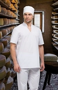 Блуза с коротким рукавом прямого силуэта, по бокам внизу небольшие разрезы для удобства движения.